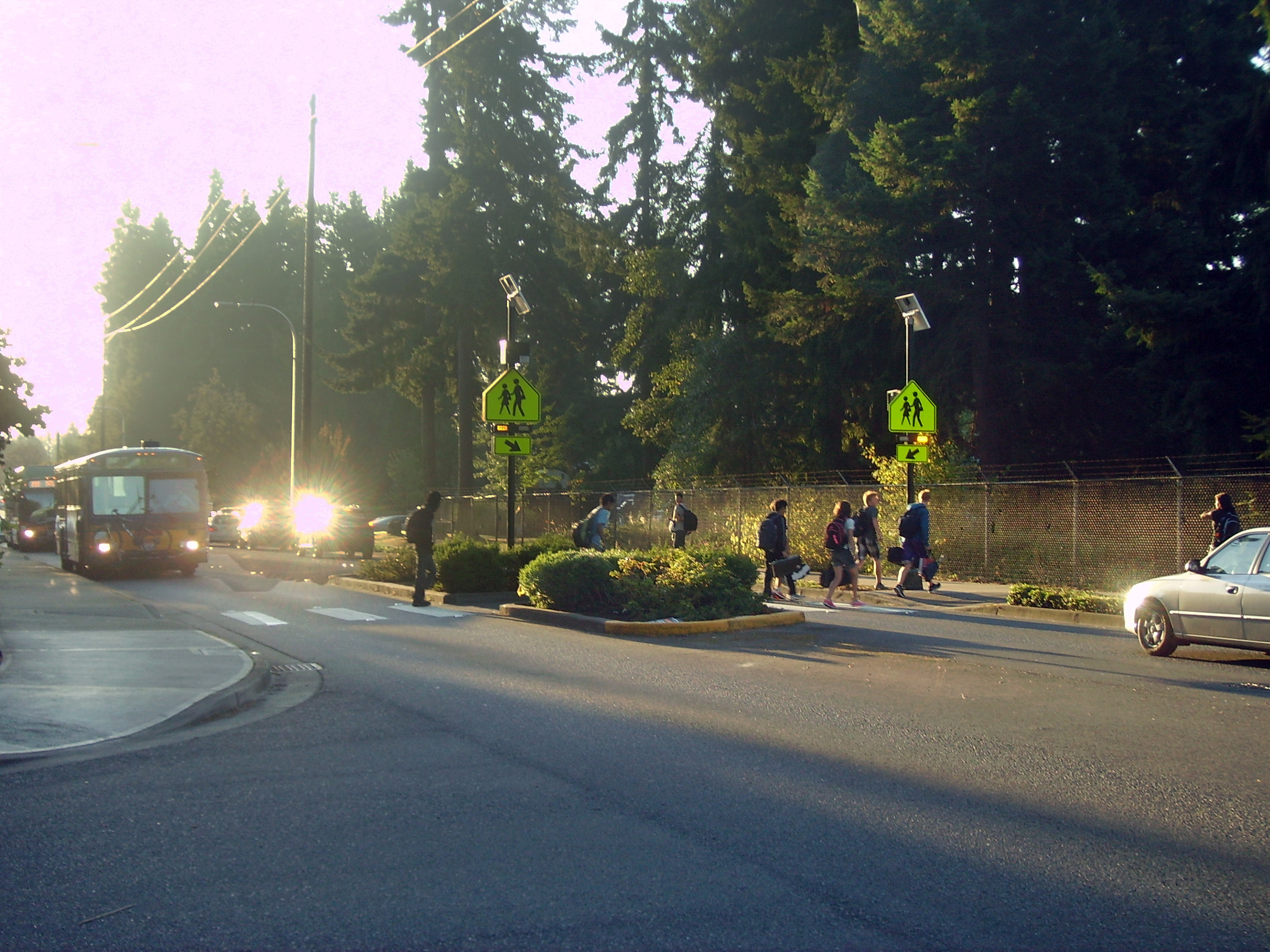 Students returning to Interlake High School on Tuesday were greeted by a new pedestrian -activated flashing light sign system on the crosswalk on 24th Avenue north of school. Due to the outstanding efforts of a dedicated Sherwood Forest Community Club team and the City of Bellevue, this new solar-based flashing light system will now greatly enhance the safety of pedestrians crossing 24th Avenue at all hours. Do you have ideas for Sherwood Forest improvements ? Are you interested in participating on one of the SFCC committees ? – If so, get involved – send an email to the SFCC Board at pelkie123@msn.com – Real change can happen as we can see above.
