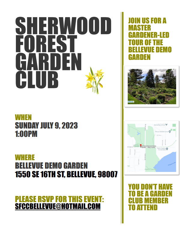 Come join the Sherwood Forest Garden Club for a Master Gardner-led tour of the wonderful Bellevue Demonstration Garden.